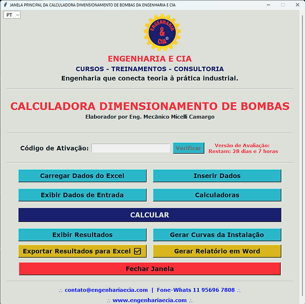 O principal resultado desse desenvolvimento é o Software Dimensionamento de Bombas, criado especialmente para complementar o Curso Prático de Especificação e Dimensionamento de Bombas.